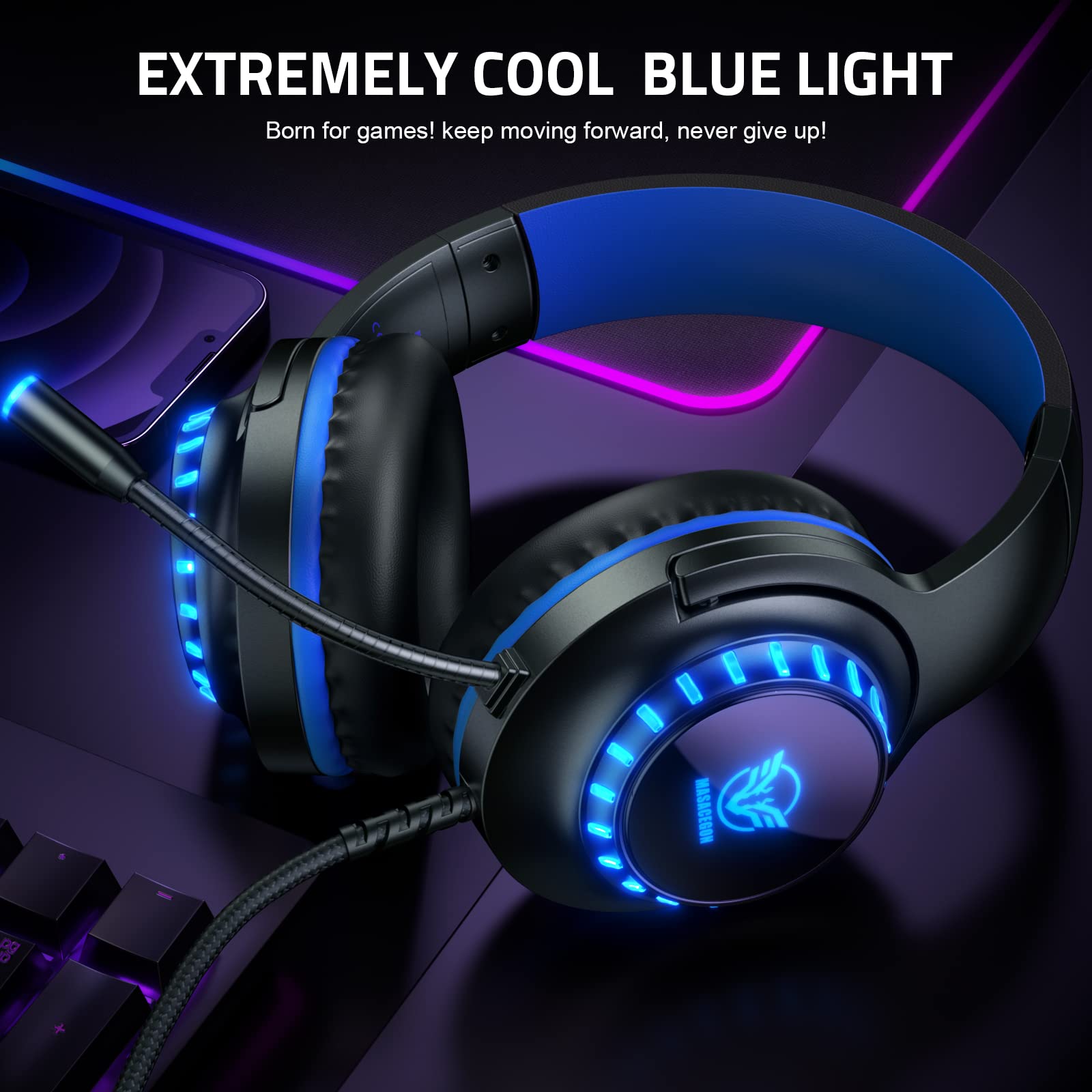obeoby Pacrate Gaming Headset for PS5/PS4/Xbox One/Nintendo Switch/PC/Mac, PS5 Headset with Microphone Xbox Headset with LED Lights, Noise Cancelling PS4 Headset for Kids Adults - Blue