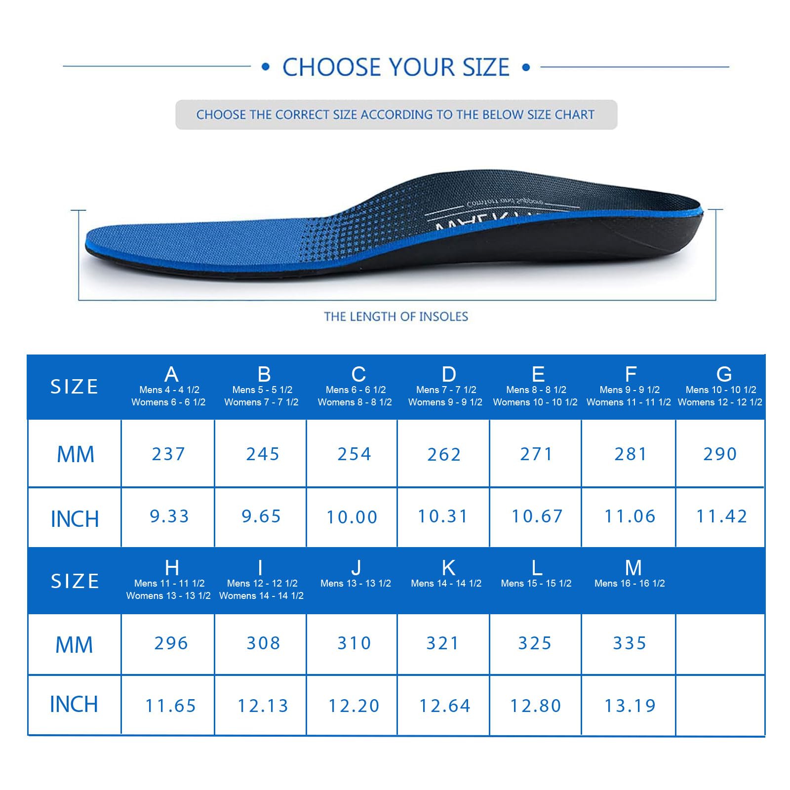 obeoby Einlegesohlen für Plantarfasziitis, Fußgewölbeunterstützung, orthopädische Einlagen, lindern Plattfüße, hohes Fußgewölbe, Fußschmerzen, blau,